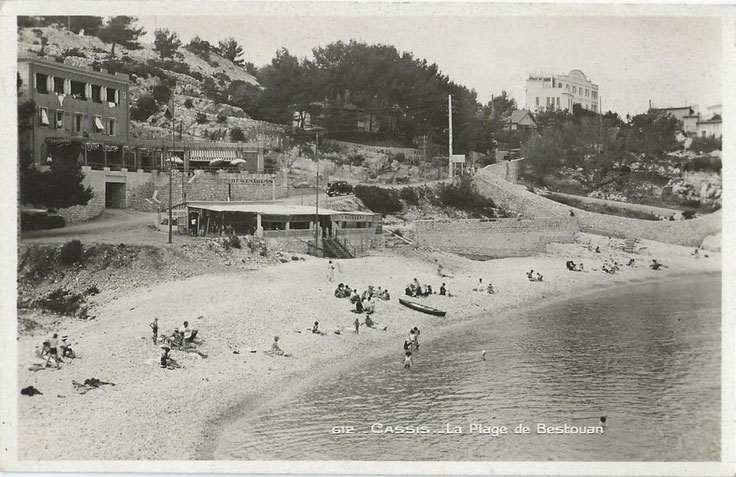 Plage du Bestouan avec le restaurant chez Blanche -env. 1955...