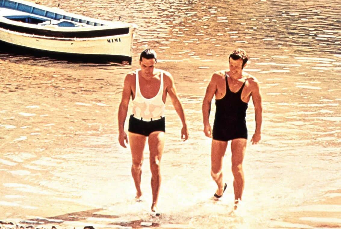 Jacques Deray Belmondo Delon sur le tournage de Borsalino. (Photo